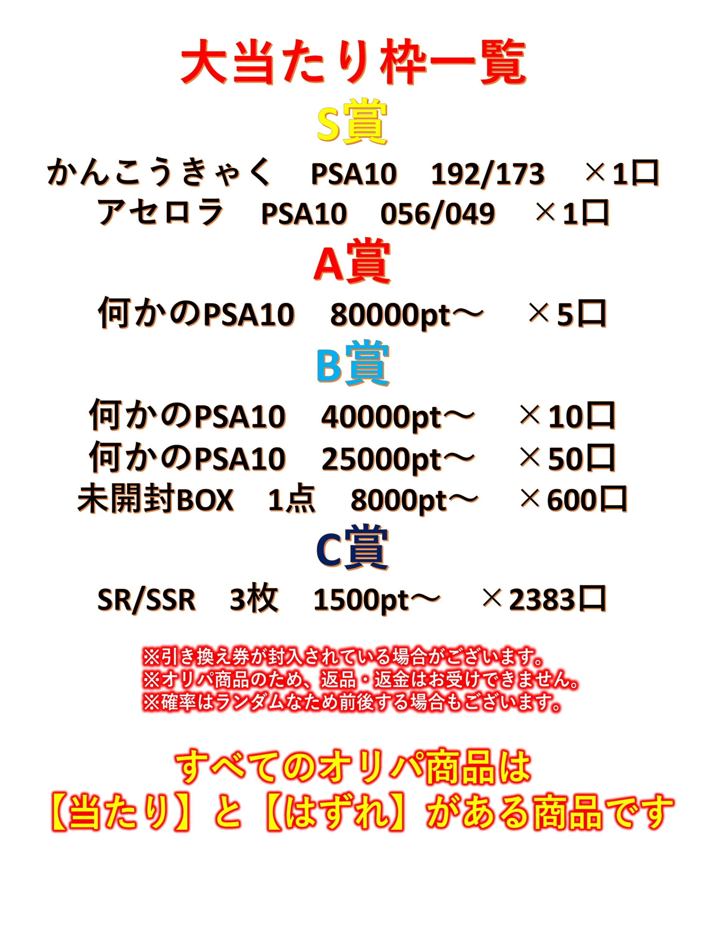 ※オリパの販売のため 返品や返金等はできません。