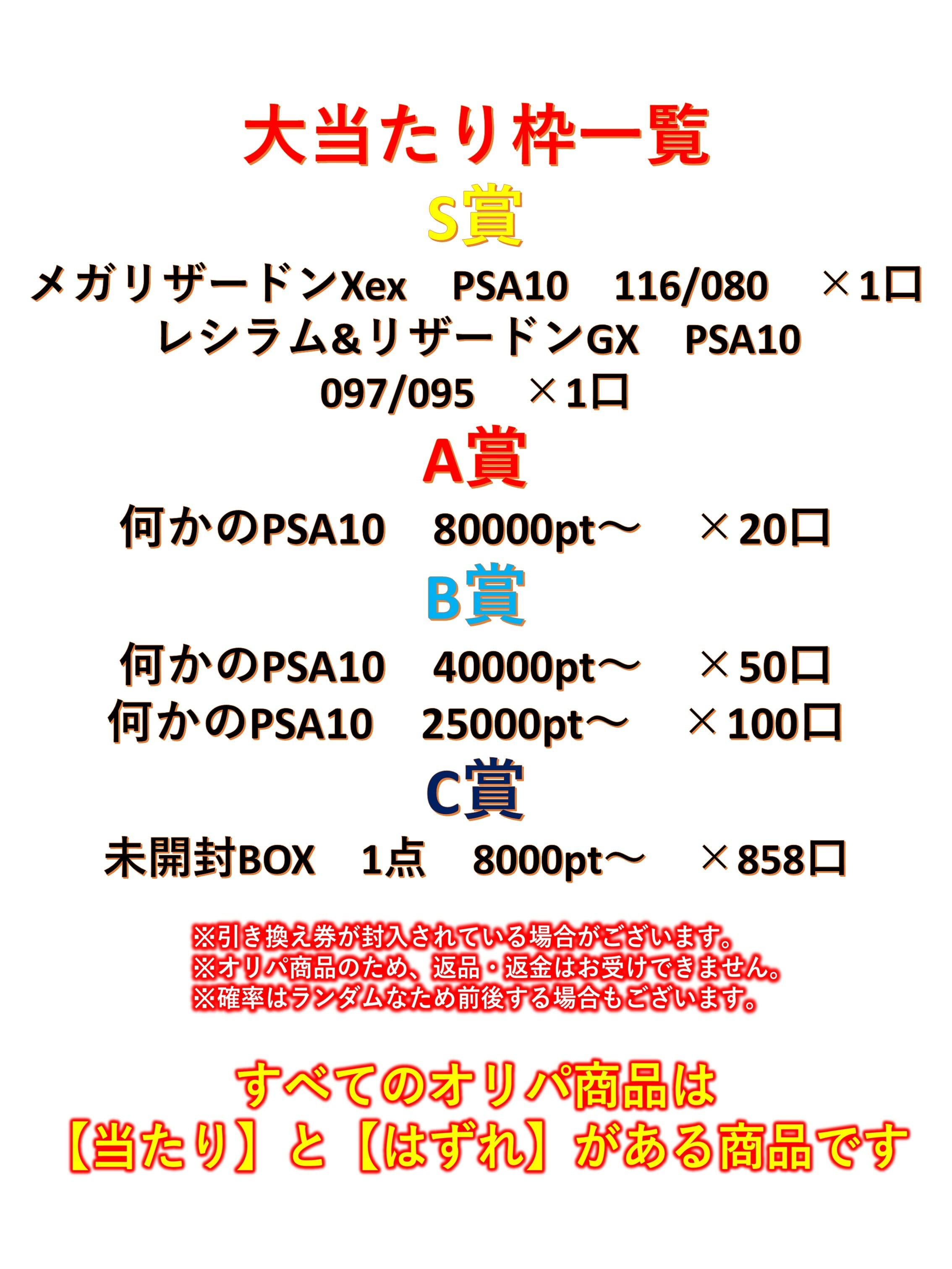 ※オリパの販売のため 返品や返金等はできません。